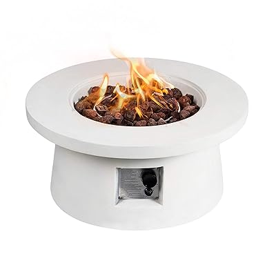 Round galvanized steel wood burning fire pit table in dark brown with stone look tile top: Made from a fiberglass reinforced quartz concrete mixture, this round gas fire pit table top is durable and beautiful. Inspire outdoor gatherings or relaxing family moments with the stunning outdoor lifestyles plaza outdoor gas fire pit. Red lava rock soil cover (84). Protective cover included to preserve the fire pit's integrity. River rock white rocks landscape stones Natural lava rock included to cover the stainless steel burner. Finished with in a bright white color, this smooth surface with pitted design will be the focus of your patio. Square steel wood fire pit with tile top Serene life slfps3 propane gas outdoor patio backyard 40,000 btu fire pit table with weather cover, lava rocks. Fire pit essentials 10 lbs. H rectangular powder coated steel lp fire pit coffee table in faux wood with lava rocks: The glacier stone oriflamme fire table is a wonderful addition to an already impressive line of fire tables.